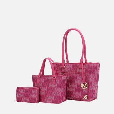 MKF Collection Lady II M Signature Large Tote, Small Tote & Wallet Set Vegan Leather, Stylish Women’s Handbag M Design by Mia K- Beige