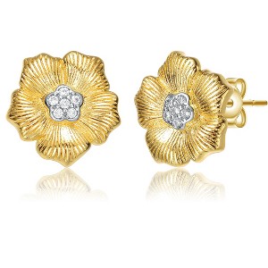 Guili 14K Gold Plated Cubic Zirconia Floral Stud Earrings for a Stylish and Elegant Jewelry Look with Sparkling Glitter for Any Occasion