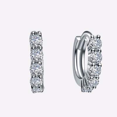 - Design: Sleek huggie hoop with clear cubic zirconia stones in a half bezel setting
