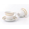 This charming set of 4 porcelain tea/coffee cup and saucer set come packaged in a beautiful and elegant rectangular black box with a clear PVC cover. This item makes a useful and impressive, great to use for everyday or special events. Porcelain cups and saucers are CCIB certified for your safety. This set features an elegant gold floral border design on the cup as well as the matching saucer. Each box arrives wrapped in plastic to protect the box. Cup measures 2.75" tall X 4" long X 3.25" wide. Saucer is 5.25 in diameter. Holds 8 ounces of your favorite coffee. Box measures 14.25" long x 6.5" wide x 3.75" tall.