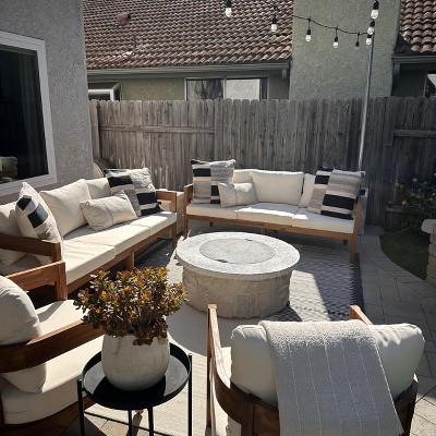 Beautiful and affordable outdoor couch. Cushions a bit firm, but comfortable overall. Paired with the matching chairs for a backyard oasis.