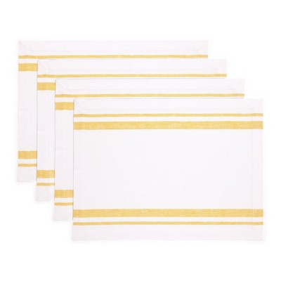 Sorrento Stripe Placemats A nod to the classic stripe, our Sorrento placemats are effortlessly stylish and ready for summer get-togethers. Made of 100% pure linen in some of our favorite summery stripe colors. Arrives as a set of four. The collection includes a tablecloth, table runner, placemats and coordinating dinner napkins.