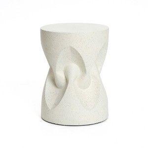 LuxenHome Outdoor Side Table , 17" Speckled Off White Modern Spade Cement Patio Table, Round End Table for Garden, Outdoor Coffee Table - 1 of 4