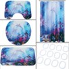 This colourful set was a great addition. Just be clear, a dozen of the pieces are shower curtain hooks. They are an improvement over the standard metal shower hooks we used for years. The toilet mat does not fit the base well. It might be OK for new models with a different base. Nevertheless, we like the whole set.