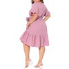 This plus-size dress is designed to meet the needs of its customers, offering comfort and style. The classic and feminine shape, along with a regular fit, makes it suitable for various occasions. Made from lightweight polyester, it ensures a comfortable experience. The dress features a V-neck, ruffled short sleeves, and a button-down front, adding a touch of elegance. Perfect for casual daily wear, work, or as a beach cover-up, it pairs well with sandals, high heels, or ankle boots. The detachable belt enhances the fit, and the solid color adds versatility to your wardrobe.