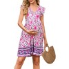 The maternity dress features sleeveless, floral print, pleated, ruffle cap sleeve, bohemian style, high waist, babydoll dress, beach dress, a-line, flowy, making the boho maternity dress elegant and flattering.