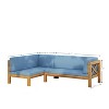 GDFStudio Caspian Outdoor Acacia Wood Left Facing 4 Seater 88.5" Sectional Sofa with Cushions, Teak/Blue