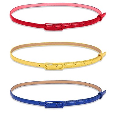 INSPIRE CHIC Women's Patent Leather PU Skinny Alloy Buckle Jeans Dress Pants Belt Red+Yellow+Sapphire