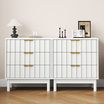 Heynemo 6 Drawer Dresser, Modern Closet Dressers with Crystal Knobs & Painted Strip, for Bedroom Living Room Hallway Closet, White