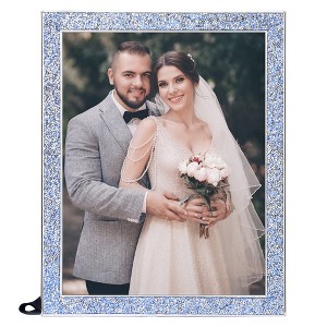 REGALWOVEN Wedding Gift Home Tabletop Decor Shiny Metal Photo Frame with Real Glass Blue 8x10