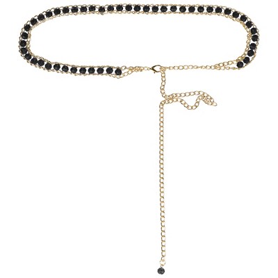 INSPIRE CHIC Women's Metal Gold Rhinestone Crystal Body Waist Chain Belts Royal Blue Fit waist up to 110cm/43"