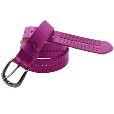 INSPIRE CHIC Women's Rounded Hollow Out Single Pin Buckle Casual Leather Belt Width 1 1/8" Purple 36-41 inches