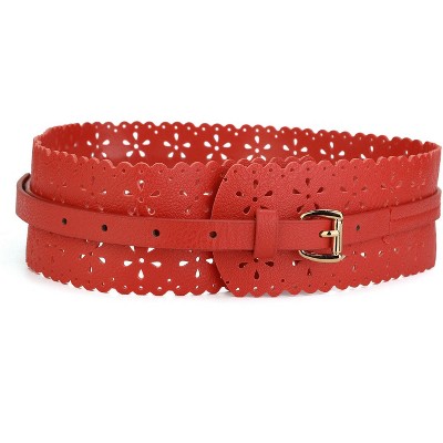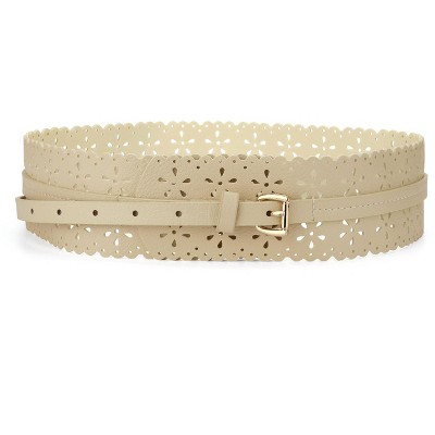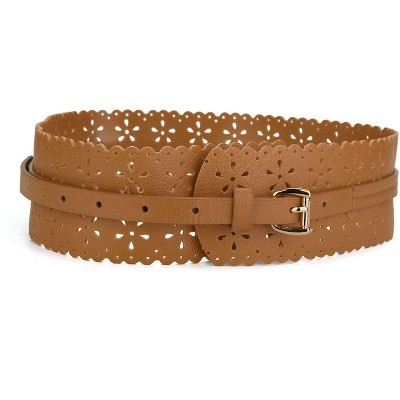 INSPIRE CHIC Women's Vintage Hollow Floral Leather Cinch Wide Waistband Brown 28"-31" waist