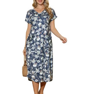 This women's short sleeve sundress offers a loose fit, making it suitable for all figure types and perfect for hiding belly fat. The casual sleeveless design is ideal for summer, with a maxi tunic tank style that is perfect for the beach. Its floral print and V-neck design add a fashionable touch, while the two big pockets provide practicality. Whether you're dressing for a casual day out or a vacation, this dress can be easily styled with sandals or sneakers. For a modern fashion look, pair it with a belt and boots or sandals.