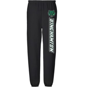 BINGHAMTON UNIVERSITY OFFICIALLY LICENSED SWEATPANTS: Embrace your school spirit with our officially licensed jogger sweatpants featuring meticulously crafted designs that proudly showcase your college or university's iconic symbols and mascots. Wear your pride in comfort and style.
