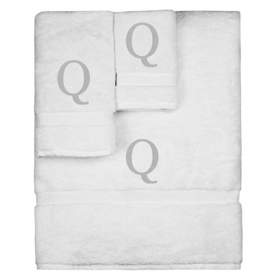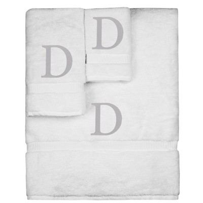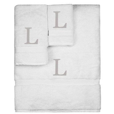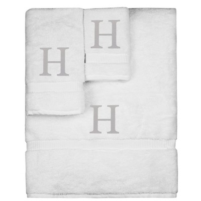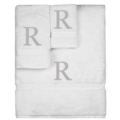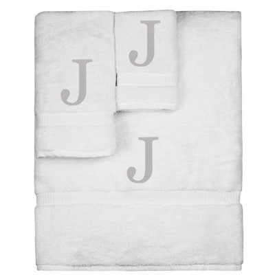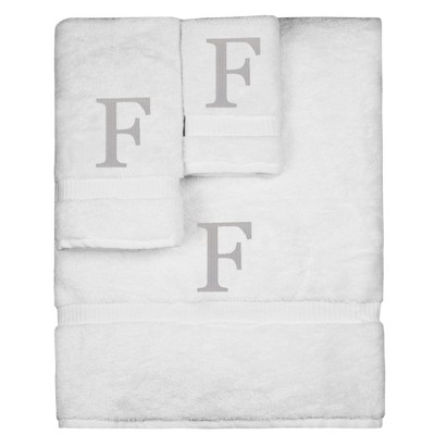 BC BARE COTTON Monogrammed Towel Set, Personalized Gift, Set of 3 - White - Silver Block - A