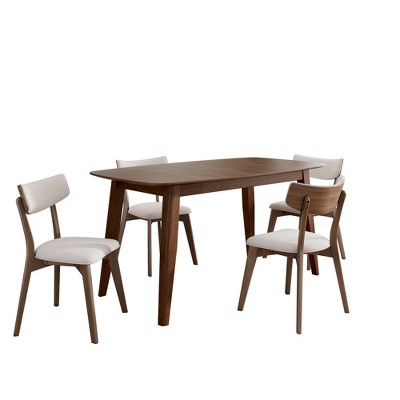 Christopher Knight Home Walton 5 Pieces Mid-Century Modern Rubberwood Upholstered Dining Set, Dark Gray/Brown