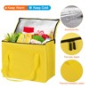 The insulated cooler bag is ideal for storing hot and cold foods during grocery shopping, camping, and picnics. It can hold a variety of foods and drinks such as sandwiches, salads, and beverages, keeping them fresh and delicious. Made from durable non-woven fabric, the bag is tear-resistant and features thermal insulation cotton and aluminum film to maintain temperature. The two-way zipper and hand straps make it convenient to carry. After use, simply wipe it down with a damp cloth to clean it and let it air dry before storing.