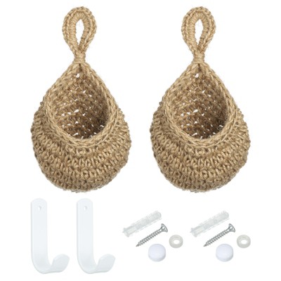 Unique Bargains Handmade Cotton Rope Natural Durable Space-Saving Hanging Basket 2 Pcs Beige Mini