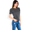 Product Name: Anna-Kaci Women's Short Sleeve Puff Shoulder Tee with Crew Neck and Slim Fit- Gray,Small