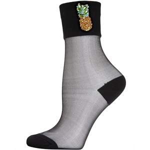 We know you’ll be crushing on these sheertastic Pineapple Crush Rhinestone Anklets the moment you slide them on. Sheer, sparkly, and cute, this fruit boasts shiny stud appliqués on the cuff of a sweetly sublime sheer low-cut. Show these babies off in heels or sneakers and look simply delicious. Fits size 9-11.