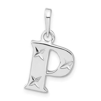 Black Bow Jewelry Sterling Silver, Sarah Collection 15mm Brocaded Disc Initial P Pendant