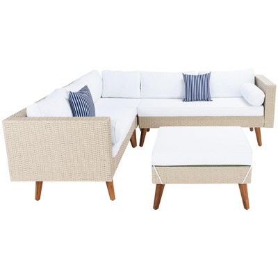 Analon Sectional Seating Set - Indoor/Outdoor - PAT7716 - Beige/White - Safavieh
