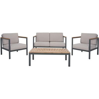 Crafted with attention to detail, this living set combines wood, metal, fabric, and foam materials to create an inviting atmosphere. The natural tones blend seamlessly with various decor styles while the light grey cushions are both stylish and practical, offering a welcoming and cozy environment. Elevate your patio, garden, or balcony with the Chicopee 4 Pc Living Set and create memorable moments in a space that reflects your personal taste and flair.