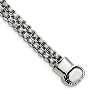 Unique Features - Dapper sophistication! This polished two-tone link bracelet is created from stainless steel with black plated mesh inlays and genuine white diamonds. The natural diamonds are G-H in color, I1 in clarity and the total diamond weight is 1/3 carat. It is approximately 11mm in width by 8.75 inches in length, which includes the fold over clasp.