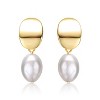 Guili Sterling Silver 14K Yellow Gold Plated Earrings with Oval White Freshwater Pearl, Featuring a Stunning Drop Medallion Dangle Design