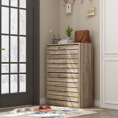 Hitow Gray Woodgrain Tipping Shoe Cabinet Double Drawer Openwork Lines