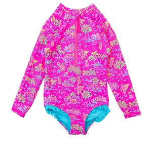 RuffleButts Girls UPF50+ Sun Protection Long Sleeve Rash Guard One Piece - 1 of 4
