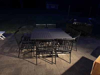 What a gorgeous set this is. Very country farmhouse chic. The cushions are super comfy. I am so thrilled with it. Set up was tedious but to be expected with 8 chairs but that shouldn’t deter you. Put on some music, have a drink and assemble away!