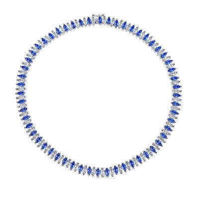 Design: A captivating sterling silver necklace featuring deep blue cubic zirconia stones, each surrounded by clear cubic zirconia accents in a halo style.