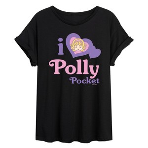 Polly Pocket - I Love Polly Pocket - Women's Oversized Graphic T-Shirt - Mini fashion meets maximum charm in Polly Pocket graphic apparel. Featuring Polly and her compact-sized world, these playful designs are a nod to tiny adventures and big imagination.