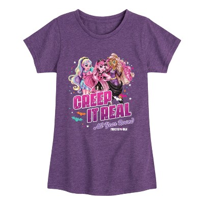 Monster High - Holographic Colors - Toddler & Youth Girls Short Sleeve T-Shirt - Freaky meets fabulous in Monster High graphic apparel starring ghouls like Draculaura, Frankie Stein, and Clawdeen Wolf. These fierce, fashion-forward designs celebrate self-expression, individuality, and monster style.