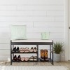This storage bench provides 2 tiers of storage for up to 6 pairs of shoes and a space for your boots as well as a removable padded cushion, offering a nice place to sit