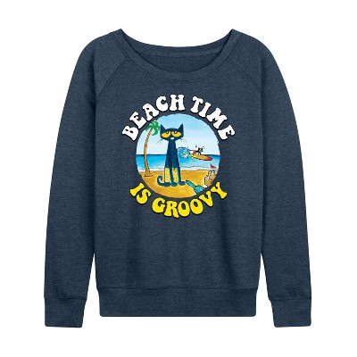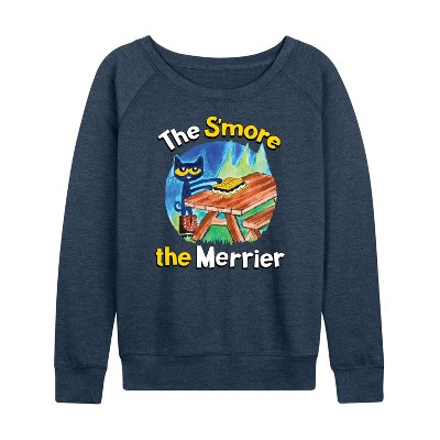 Women's Polly Pocket Believe In The Little Things Lightweight French Terry Wide Neck Long Sleeve Graphic Shirt - Heather Indigo - Small