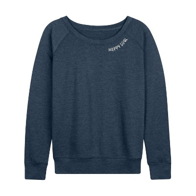 Women's Instant Message Sorry, I Can't, I'm Counting Stitches Lightweight French Terry Wide Neck Long Sleeve Graphic Shirt - Heather Indigo - Small