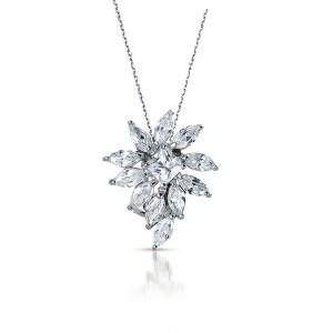 The pendant is crafted in sterling silver with white gold plating, reflecting high-quality craftsmanship.