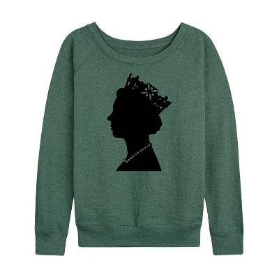 Women's Barbie Witch Sihlouette Lightweight French Terry Wide Neck Long Sleeve Graphic Shirt - Heather Juniper - Small