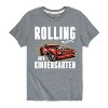 Hot Wheels - Rolling Into Kindergarten - Youth Short Sleeve Graphic T-Shirt - Speed into bold style with Hot Wheels graphic apparel, featuring high-octane designs that showcase legendary cars like the Twin Mill, Bone Shaker, and other fan favorites. Each piece captures the adrenaline-pumping excitement of epic tracks, jaw-dropping stunts, and non-stop racing action. Perfect for fans of all ages who grew up launching cars off orange tracks and collecting miniature speed machines, this collection brings the thrill of Hot Wheels to your everyday look with energy, nostalgia, and unmistakable style.