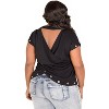 Poetic Justice Plus Size Curvy Women's V-Back Cut Out Gold Grommets T-Shirt Black 3X
