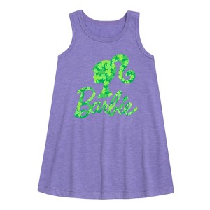 Girls' - Barbie - Logo Shamrock Pattern Graphic Sleeveless Aline Dress - 1 of 3