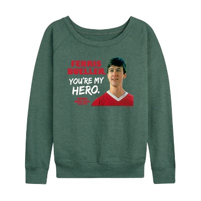 Women's Clueless Way Harsh Tai Lightweight French Terry Wide Neck Long Sleeve Graphic Shirt - Heather Juniper - Medium