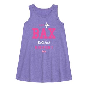 Barbie -BAX Barbie Land Airport - Toddler & Youth Girls A-line Dress - Step into the glamorous pink world of Barbie with our officially licensed graphic garments for the fashion-forward! Whether you dream of being a fashion designer, a mermaid princess, or a world-traveling explorer, our garments bring Barbie's world to life with vibrant colors and playful prints. Crafted with quality materials and attention to detail, each piece ensures comfort and durability for all-day play. Express your unique sense of style and imagination with our exclusive Barbie graphic apparel!