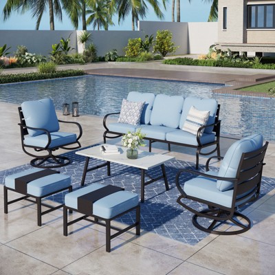 Captiva Designs 6pc Metal Patio Furniture Conversation Set with Swivel Chairs and Ottomans for Garden Porch Backyard Beige