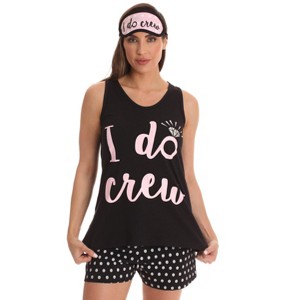 SLAY AS A SQUAD: The cutest matching bridal pajama set for the bride and her entire crew. This 3-piece bridal PJ set comes with a printed tank top, polka dot bottoms, and a matching sleep mask. The soon-to-be Mrs. will love the pink/white bride pajamas, and her squad will adore the black/ pink bridesmaid pajama short set.
