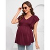 This summer casual women maternity shirts feature with ruffle short sleeve, v neck, loose fit, solid color, plus size, ruched, empire waist, pleated, high waist. Color: Black, Burgundy, Army Green. Size: S, M, L, XL, XXL.