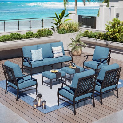 Captiva Designs 4pc Extra Large Metal Patio Outdoor Conversation Set with Armchairs for Garden, Poolside, Backyard Denim Blue